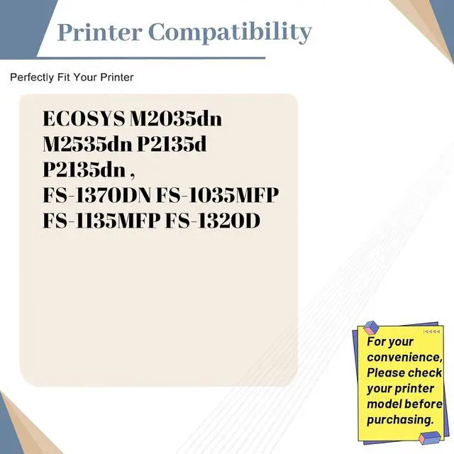 Compatible Printer ListFor Kyocera ECOSYS M2035dn M2535dn P2135d P2135dn ,FS-1370DN FS-1035MFP FS-1135MFP FS-1320D Printer.