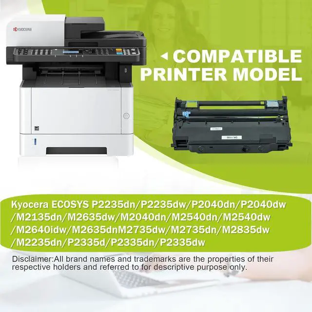 • Compatible Printers: ECOSYS P2235dn/ P2235dw/P2040dn/P2040dw/M2135dn/M2635dw/M2040dn/M2540dn/M2540dw/M2640idw/M2635dn/M2735dw/M2735dn/M2835dw/M2235dn/P2335d/P2335dn/P2335dw