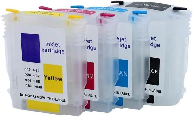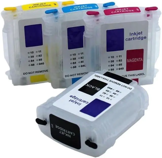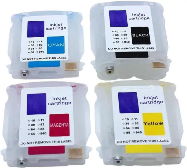 Includes four color cartridges with integrated chips for