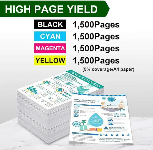 High Page YieldC3224 C3326 C3426 toner cartridge Standard capacity Black 1500 pages and Yellow Magenta Cyan is about 1500 pages toner cartridges at 5% coverage of A4 paper.This provides exceptional value for money and reduces the frequency of cartridge replacements.[WITH CHIP]