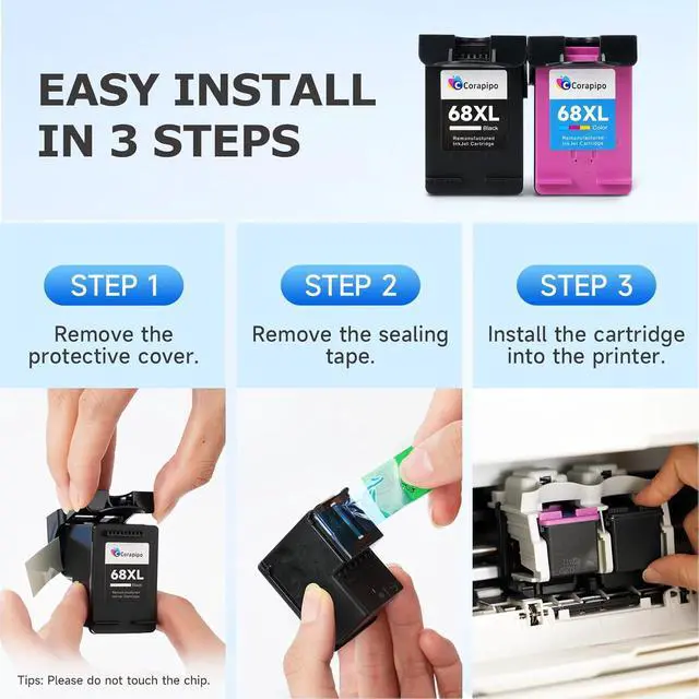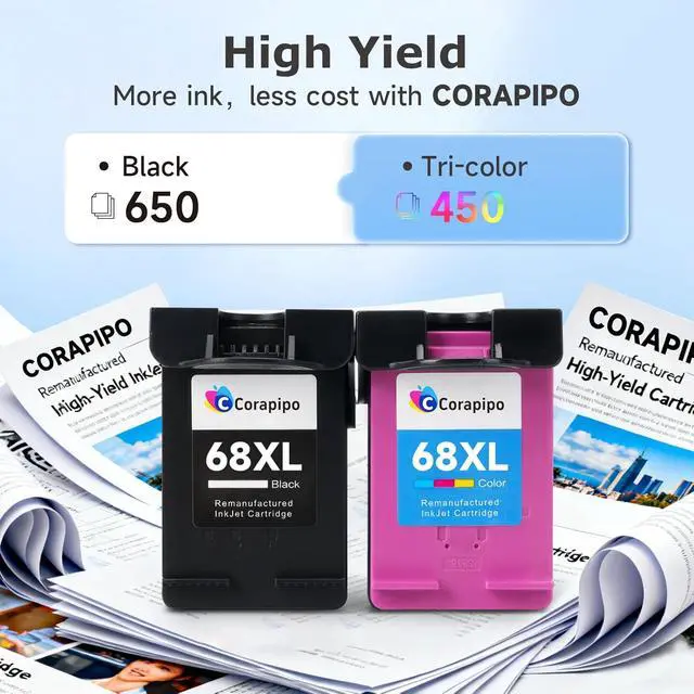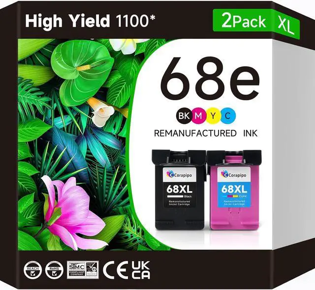 Why choose us for your 68e/68XL inks? Engineered to deliver high-quality prints, Corapipo 68E Comb Pack ( 68E Black& 68E Tri-Color Ink Cartridges ),every products undergo series strict quality control,ISO9001,STMC.Producing a remanufactured cartridge 68XL to make us to be a ustainable printing supplies.