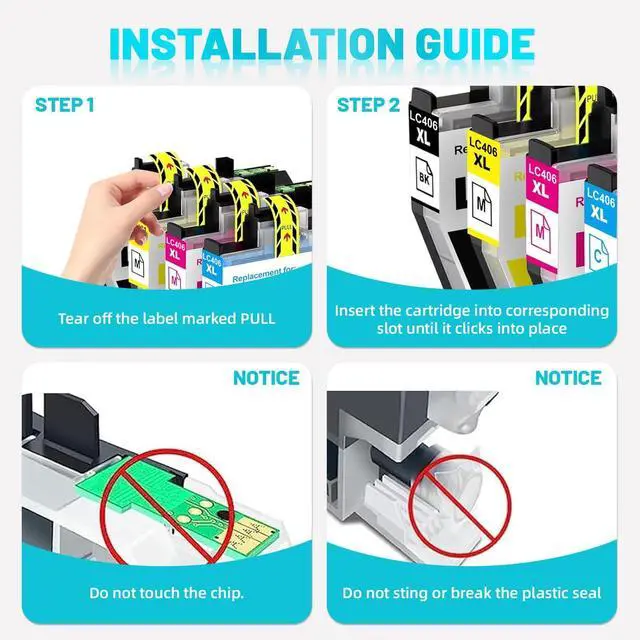 Included: LC406XL Ink Cartridges Compatible for Brother LC406XL LC406 Ink Cartridge brother, Included 1 Black lc406xl,1 Cyan lc406xl,1 Magenta lc406xl,1 Yellow lc406xl).