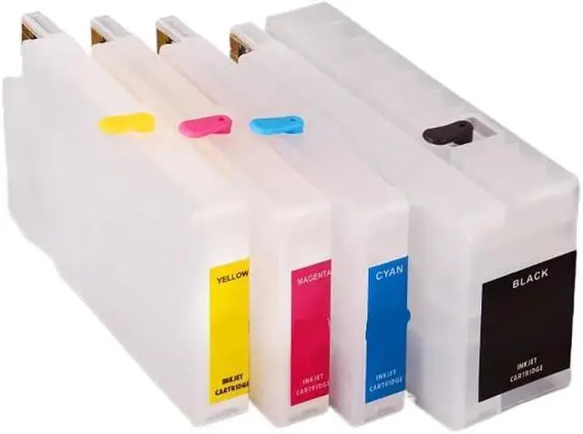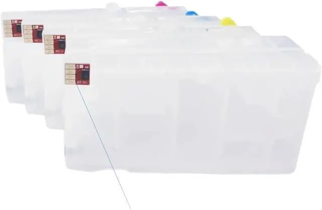 Includes refillable ink cartridges in four standard colors: black, cyan, magenta, and yellow