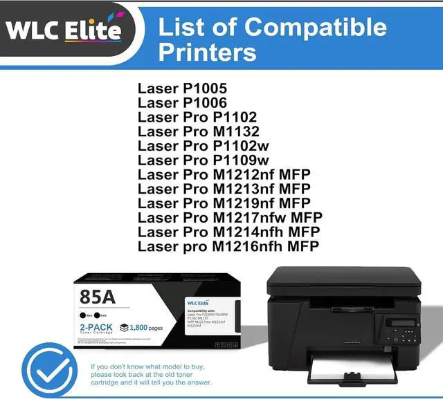 What's in the box? 2 Pack WLCelite 85A CE285A toner cartridge replacement for hp 85A CE285A toner cartridge