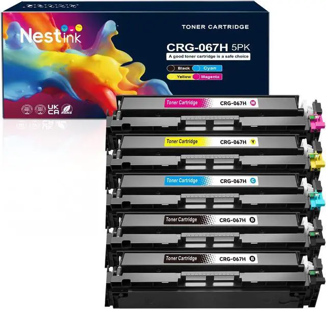 067H Toner with Chip: 067 toner cartridges compatible replacement for Canon 067 067H Toner Cartridges 5-Pack High Yield Set with built-in smart chips are engineered to ensure strong compatibility (Ink level cannot be displayed). NO need to remove and install the OEM chip manually.