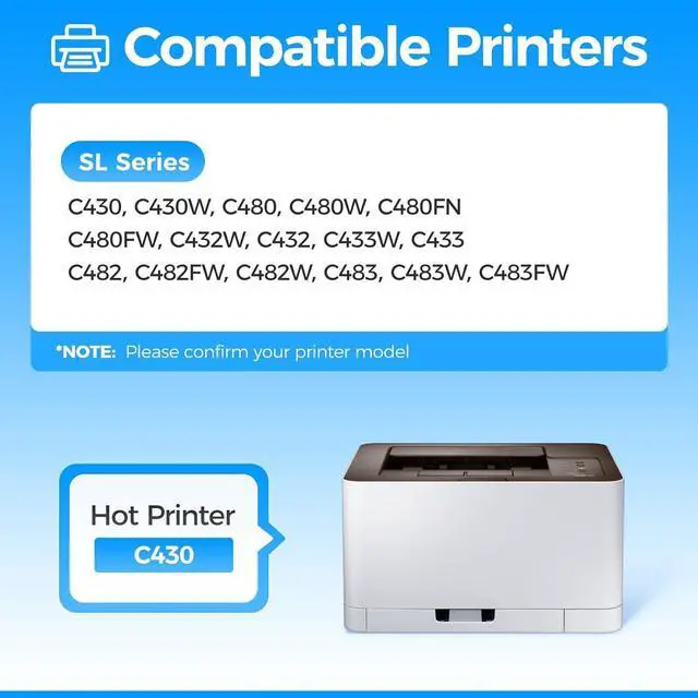 Printer Compatibility: To use with SL Series: C430 C430W C480 C480W C480FN C480FW C432W C432 C433W C433 C482 C482FW C482W C483 C483W C483FW Printer