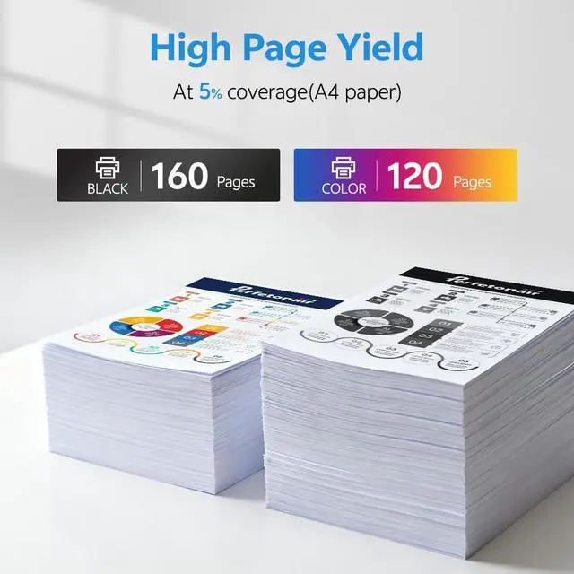 High Page Yield: 160 pages for per 68 black ink cartridge, 120 pages for per 68 tri-color ink cartridge(at 5% coverage of A4 paper)
