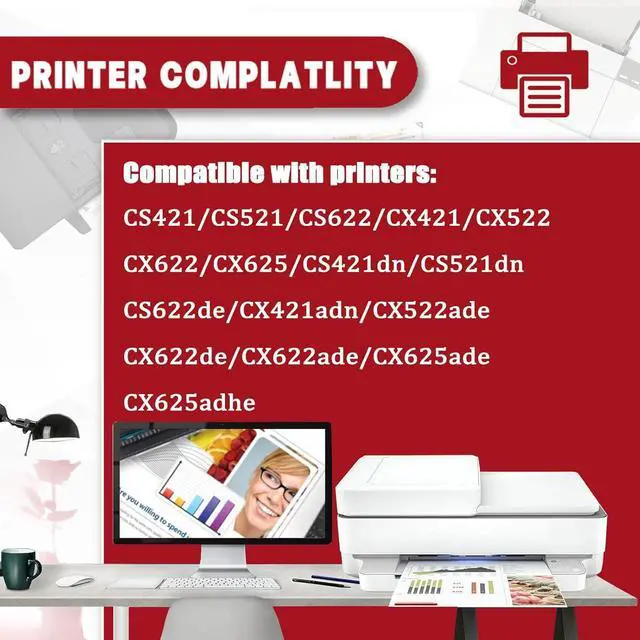 The 78C10 toner cartridge is compatible for Lexmark CS421 CS521 CS622 CX421 CX522 CX622 CX625 CS421dn CS521dn CS622de CX421adn CX522ade CX622de CX622ade CX625ade CX625adhe Printers.