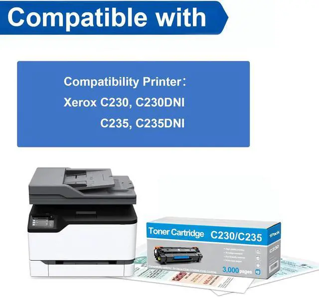 Compatible with Compatible with Xerox C235 C230 C235DNI C230DNI Color Printer (These toner cartridge come without counting chip, when use it, please install with the old counting chip,if you don't have old chip,please don't buy it)