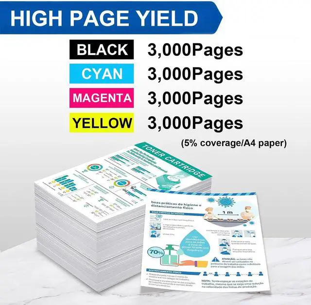 High Yield Features3000 pages per black toner cartridge(5% coverage/A4 paper), these toner cartridges provides clear and vibrant printing effect, which gives you a good visual feast, this provides excellent cost performance and reduces the frequency of ink cartridge replacement.
