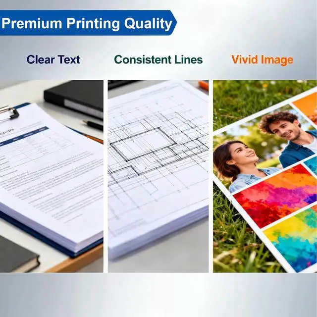 Professional OutputProduces crisp text, smooth grayscale, and clear details, ensuring professional print quality for documents, reports, and presentations.