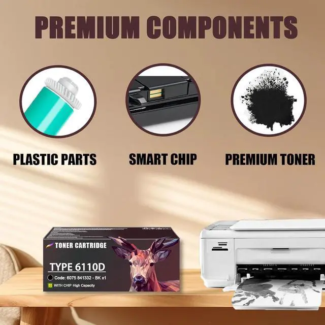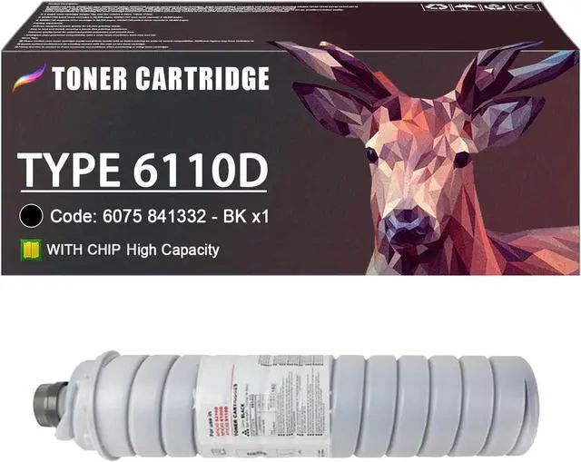 The Type 6110D 6075 841332 black toner cartridge can print approximately 43,000 pages