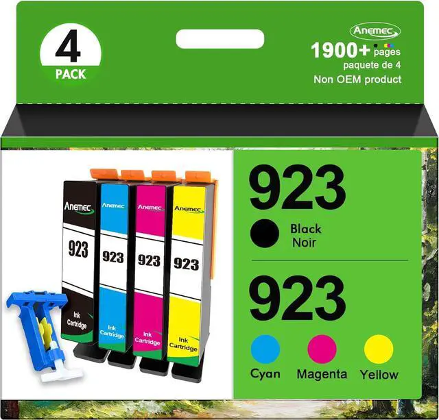 What's in the box: 923 high yield ink replacement for hp 923xl ink cartridges combo pack (Includes 1 * black, 1 * cyan, 1 * magenta, 1 * yellow, 1 * user guide)