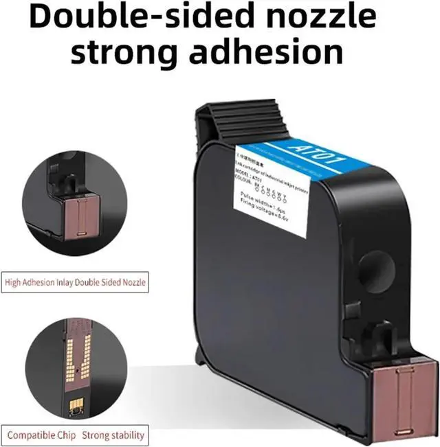 Features quick-drying solvent ink technology that produces smudge-resistant prints immediately after application. The high-adhesion formula ensures clear, durable codes and text on various surfaces including cardboard, plastic and metal packaging materials.