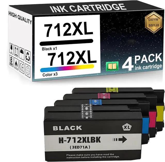 [PACKAGE CONTENTS]: for HP 712XL Ink Cartridge (1 Black, 1 Blue, 1 Red, 1 Yellow)