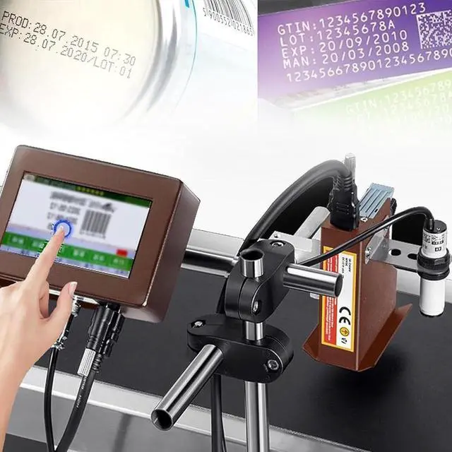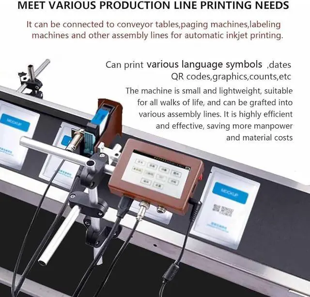 ONLINE INKJET CODING MACHINEThis small intelligent assembly line coding machine can automatically print codes, barcodes, language characters, graphics, serial numbers, text, symbols, dates, logos, etc