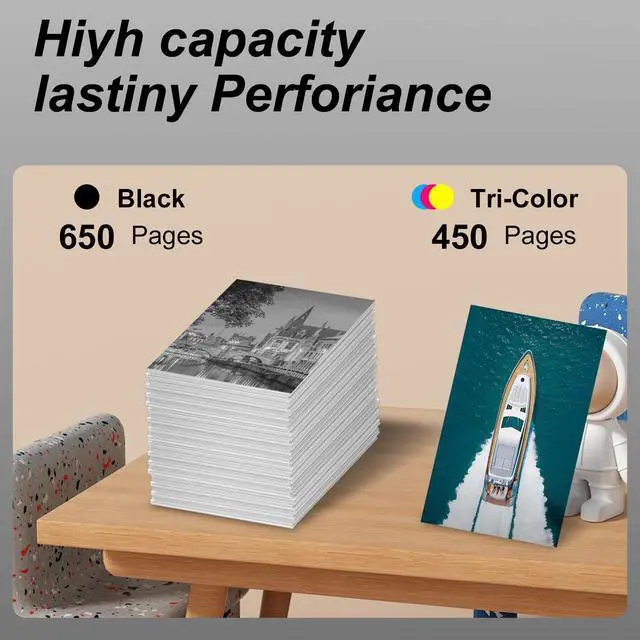 High Page Yield: Up to 320 Pages per 68e black ink cartridge and 120 Pages per 68e color ink cartridge at 5% coverage (A4/letter).