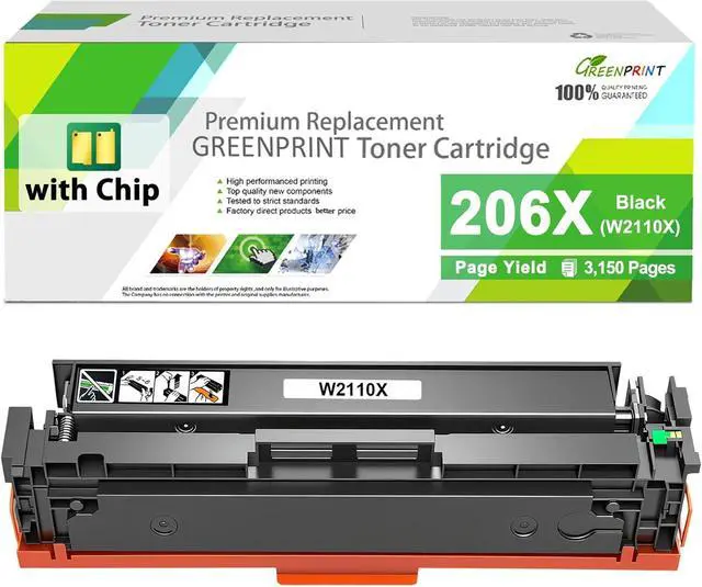 Item includedGREENPRINT WITH CHIP W2110X ( W2110A ) Compatible Toner Cartridge Black. This cartridge can be used for replacing original 206X Black 206A Black W2110X W2110A toner cartridge.