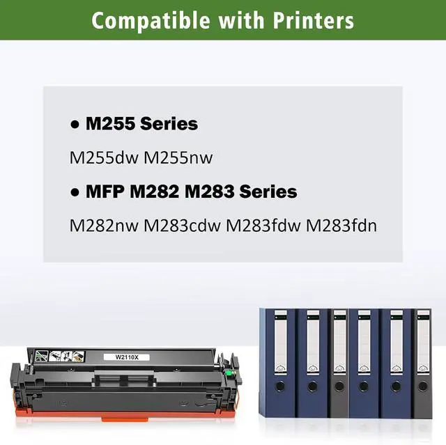 Compatible with printers Compatible for Pro M255 Series M255dw M255nw; MFP M282 Series MFP M282nw; MFP M283 Series MFP M283cdw M283fdw M283fdn Printers.