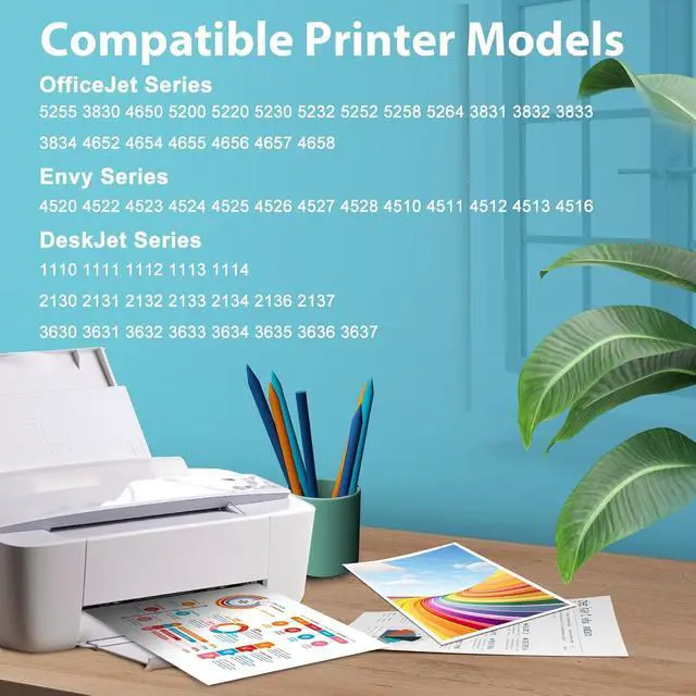 For HP 63XL Ink Cartrisge Compatible Printers: Officejet 5255 5258 3830 4650 5252 4652 3831 3832 3833 3834 3836 4655 4654 4656 4657 4658 5222 5212 5220 5230 5232 5260 5264 printers