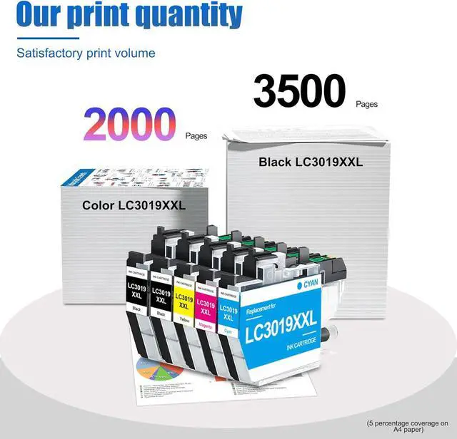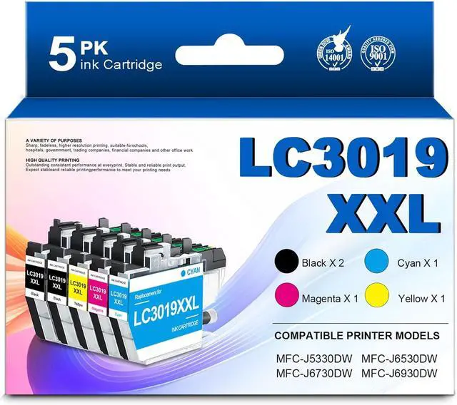 Packing List: 2 x LC3019XXL Black, 1 x LC3019XXL Cyan, 1 x LC3019XXL Magenta, 1 x LC3019XXL Yellow (Total 5 Pack)