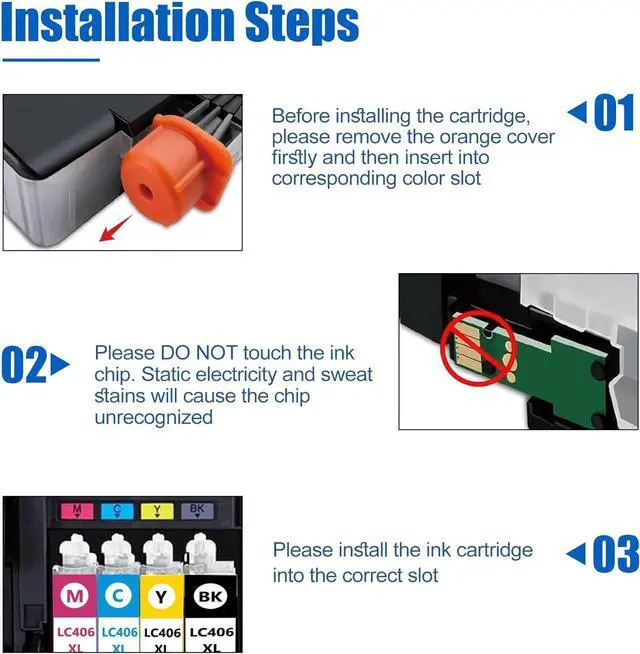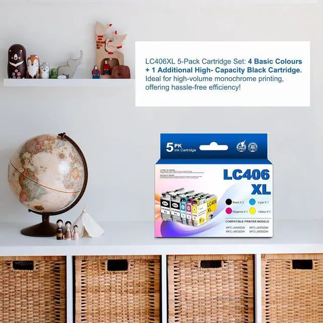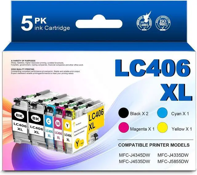 Package Contents: 5 Combo Pack LC406XL ink, 2* Black LC406XL Ink 1 * Cyan LC406XL Ink , 1 * Magenta LC406XL Ink , 1* Yellow LC406XL Ink