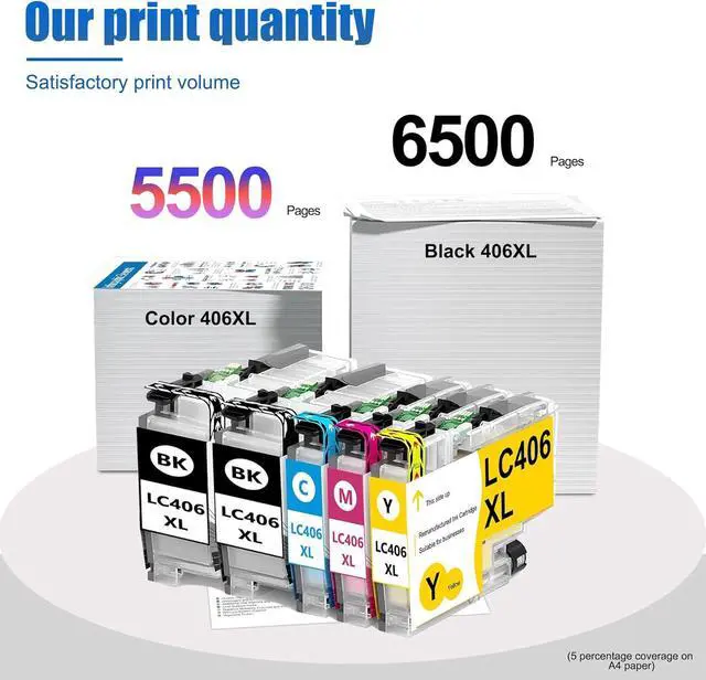 Extra-large Capacity: UP to 6,500 pages per LC406 Black Ink Cartridge and 5,500 pages for LC406 Color Ink Cartridge (A4 Letter, at 5% Coverage)