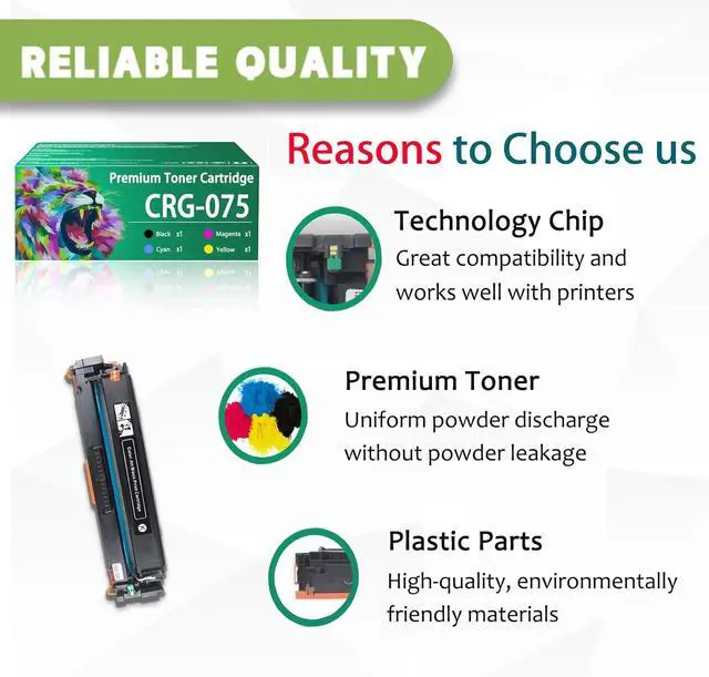 Our Advantages: CRG-075 toner cartridge uses premium toner, with fine particles, low scrap rate, and no ink leakage, ensuring sufficient number of printed pages, high color saturation, and clearer color printing, creating a more realistic creation for you and your eyes visual effects