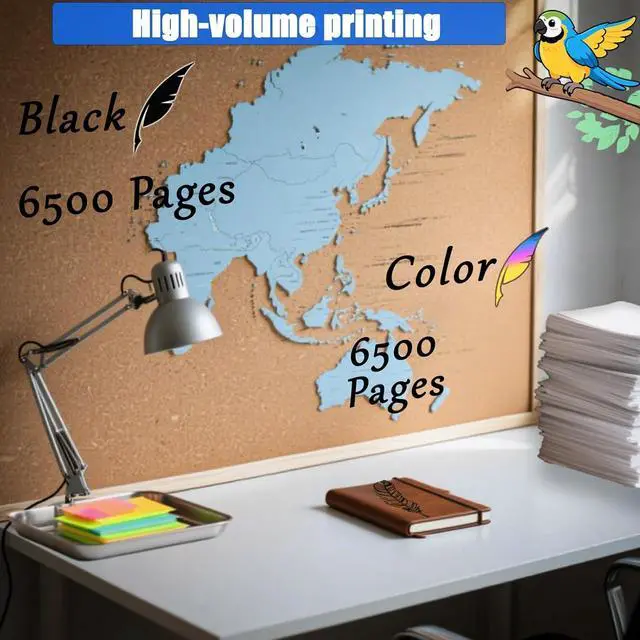 High Capacity: Our products are designed to print more pages, with large capacities that reduce the frequency of replacement; Black (BK/K) Print Pages: 6500 pages; Color (C/M/Y) print pages: 6500 Pages (5% coverage on A4 paper)