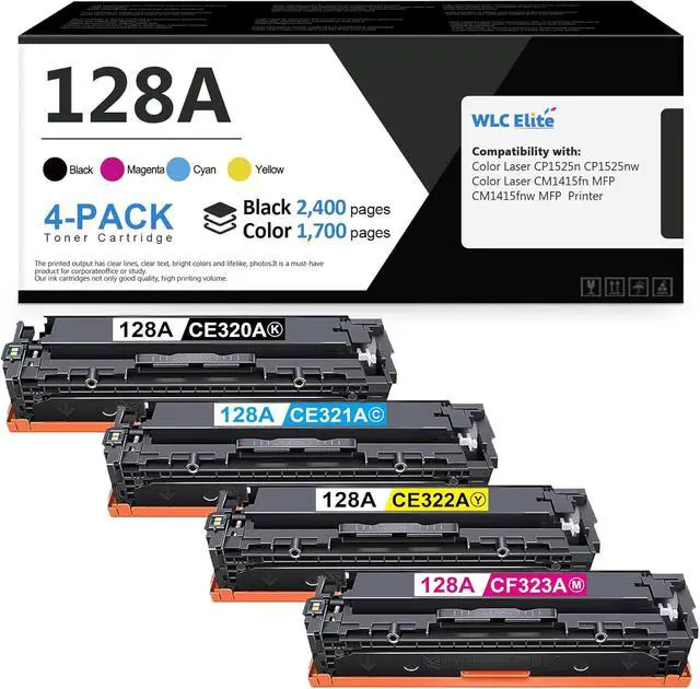 Package Contents:1 x 128A CE320A Black Toner, 1 x 128A CE321A Cyan Toner, 1 x 128A CE322A Yellow Toner, 1 x 128A CE323A Magenta Toner