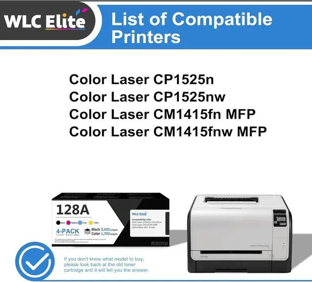 Compatible Printer Models: 128A Toner Cartridges 4 Pack Replacement for HP Color Laser CP1525n CP1525nw Color Laser CM1415fn MFP CM1415fnw MFP Printer