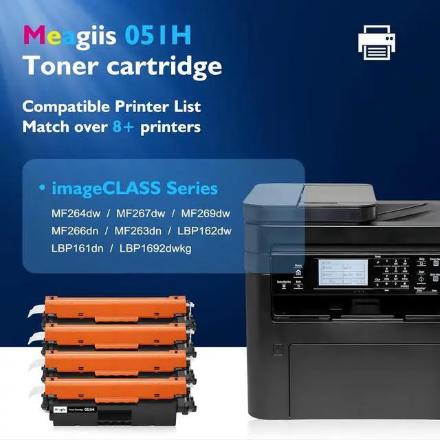 For Use With: CRG-051H CRG051H 051H Toner Cartridge fully compatible with Canon imageCLASS MF260 series, MF260 ii, MF267dw, MF267dw ii, MF269dw ii, MF269dw, MF263dw, MF264dw, LBP162dw, LBP160 series laser printers