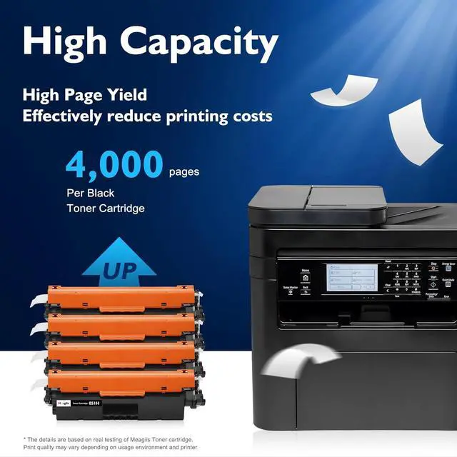 High Page Yield: Up to 4,000 pages per CRG051H Black Toner Cartridge at 5% coverage (Letter/A4), 16,000 pages in total, ideal for users with high-volume printing needs and reducing frequent replacement