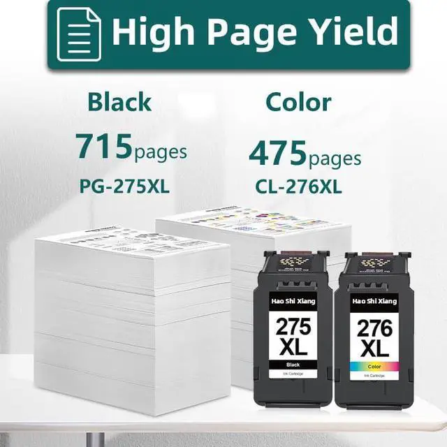 Page Yield: Up to 430 pages per 275xl ink cartridges for Canon printers, 410 pages per 276xl ink cartridges for Canon 276 xl color ink cartridge at 5% coverage