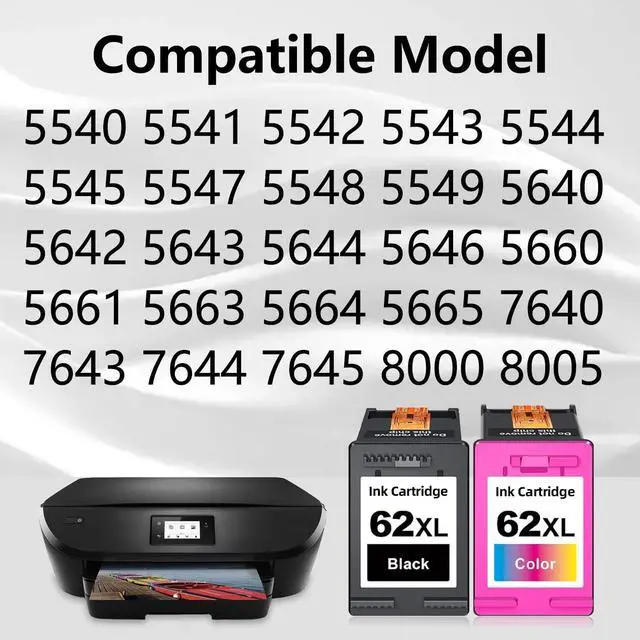 Content: This 62XL 62xl 2 color value pack contains: 1 x Pigment Black 62XL, 1 x Black 62XL Ink Cartridges