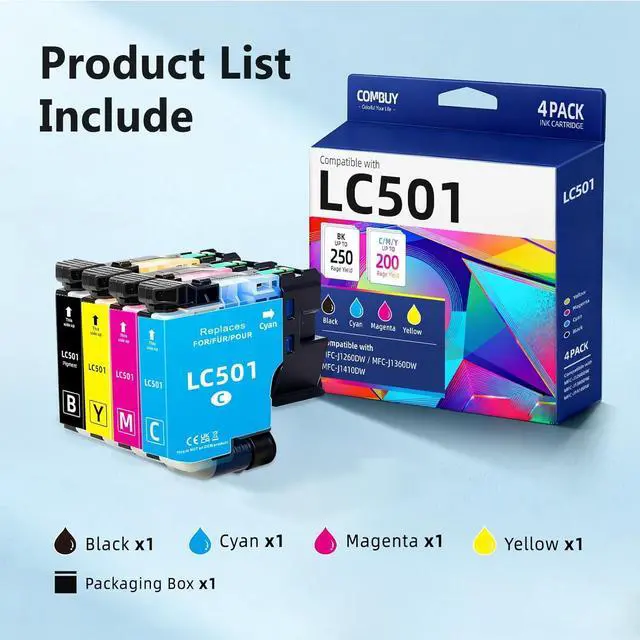 Product Name: COMBUY LC501 Ink Cartridges Standard Yield Compatible for Brother LC501 Ink Cartridges 4-Pack (Fully Compatible with Printer)