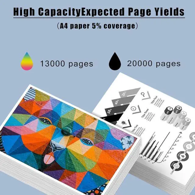 HIghest Page YIeldUp to 20000 pages per black Ink cartrIdge and 13000 pages per color Ink cartrIdge (5% coverage) A4 paper.