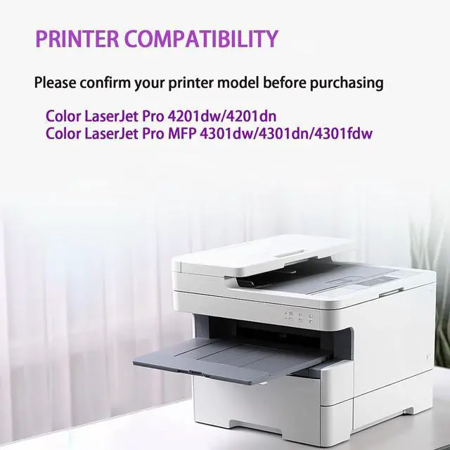 [Printer Compatibility] Toner cartridges are compatible with Color LaserJet Pro 4201dw, 4201dn, LaserJet MFP 4301dw, 4301dn, and 4301fdw Printers