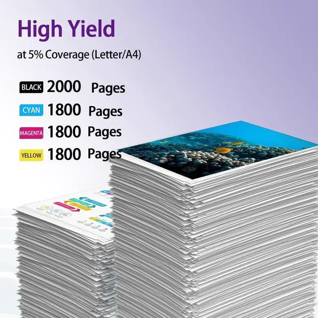 [Print Yield] Black cartridges deliver up to 2000 pages, while color cartridges provide up to 1800 pages (at 5% coverage on A4 paper)