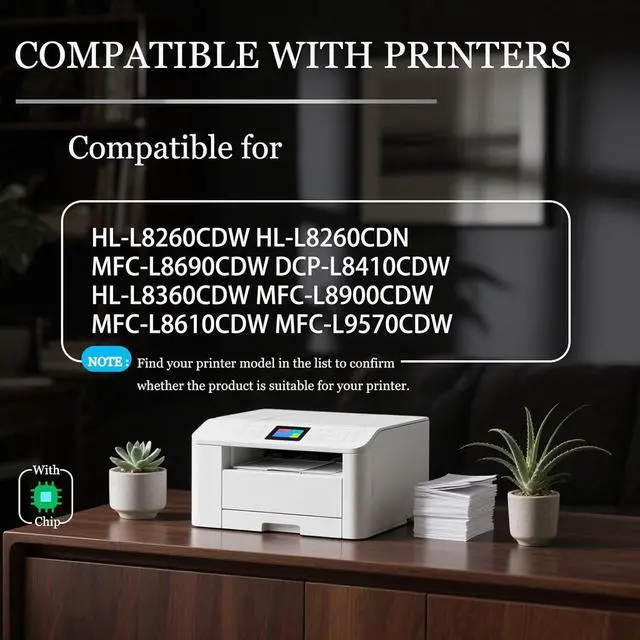 Compatible Printers: Compatible for Brother TN-421 Toner Cartridge Compatible for Brother HL-L8260CDW HL-L8260CDN MFC-L8690CDW DCP-L8410CDW HL-L8360CDW MFC-L8900CDW MFC-L8610CDW MFC-L9570CDW MFC-L9570CDWT HL-L9310CDW Printers