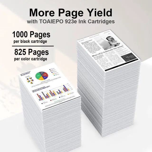 High Page Yield: Up to 1000 pages per 923e black ink cartridges, Up to 825 pages per 923e color ink cartridges for A4 paper at 5% coverage