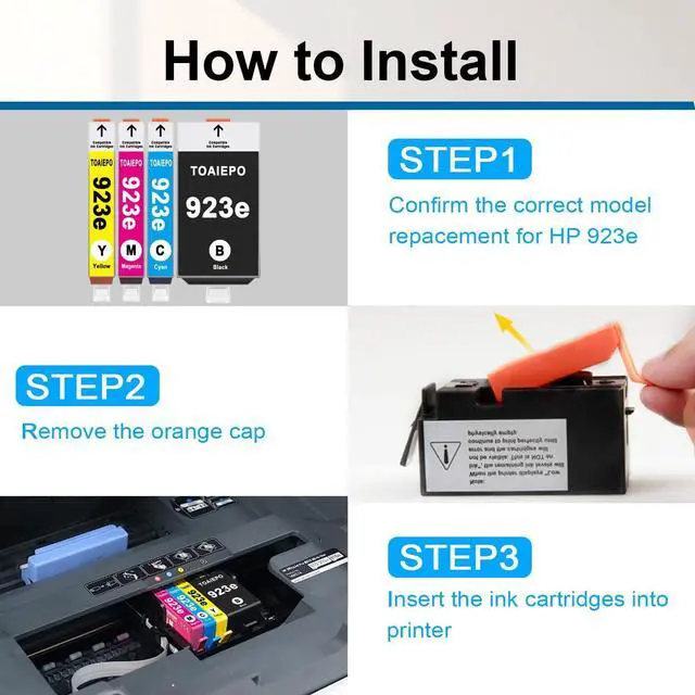 TOAIEPO 923e Ink Cartridges work for HP OfficeJet 8122e OfficeJet Pro8135e 8130e 8139e 8138e 8122e 8124e 8125e 8132e 8134e Printer Printers.