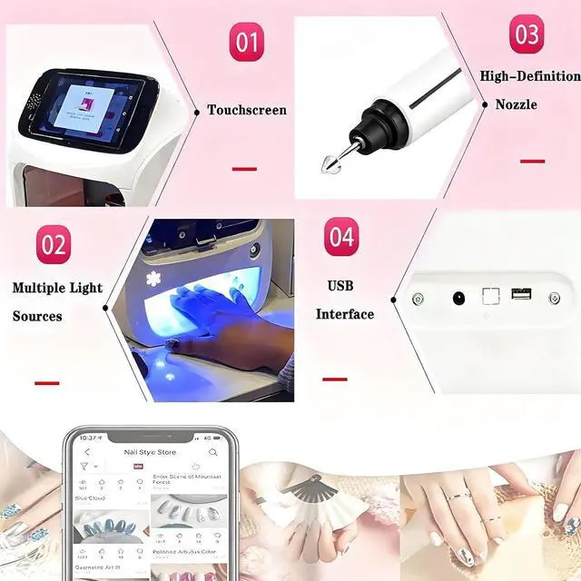 Digital Mobile Nail Art PrinterCreate personalized designs using your photos or choose from 3000+ app patterns. Simple 5-step process makes professional nail art accessible for beginners