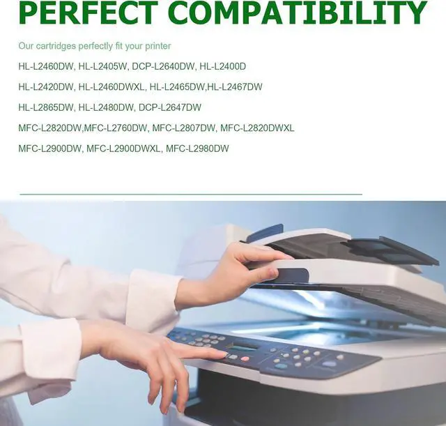 This cartridge works with: DCP-L2640DW DCP-L2647DW HL-L2400D HL-L2405W HL-L2420DW HL-L2467DW HL-L2480DW HL-L2865DW HL-L2460DW HL-L2460DWXL HL-L2465DW MFC-L2760DW MFC-L2807DW MFC-L2820DW MFC-L2820DWXL MFC-L2900DW MFC-L2900DWXL MFC-L2980DW Printer