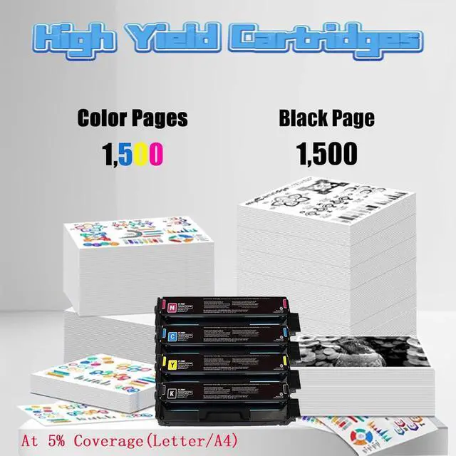 High Capacity Performance:Enjoy high-yield capabilities with our black toner cartridge providing up to 1,500 pages, while each color cartridge (Cyan, Magenta, Yellow) supports up to 1,500 pages, making it ideal for high-volume printing tasks (based on 5% coverage test on A4 paper)