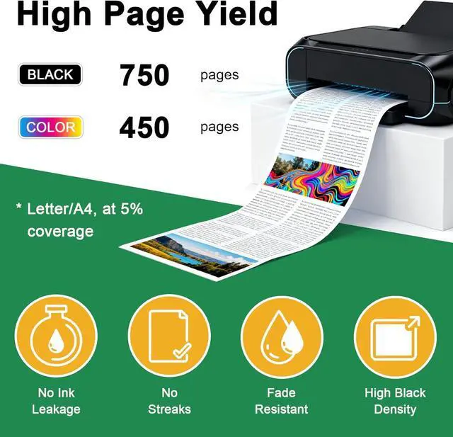 High-Capacity Ink Economy: Delivers 750 pages (Black) and 450 pages (Color) at 5% A4 coverageperfect for home, office, and photo printing