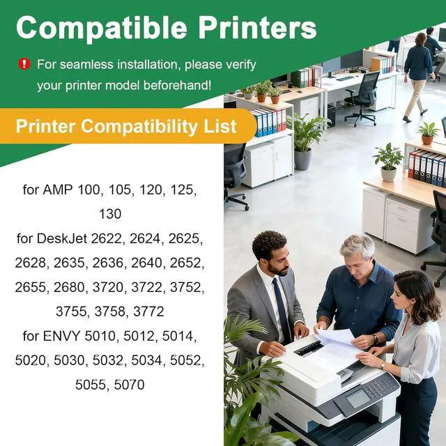 Precision Fit: Engineered specifically for 65xl models, ensuring seamless compatibility for AMP 100, 105, 120, 125, 130 for DeskJet 2622, 2624, 2625, 2628, 2635, 2636, 2640, 2652, 2655, 2680, 3720, 3722, 3752, 3755, 3758, 3772 for ENVY 5010, 5012, 5014, 5020, 5030, 5032, 5034, 5052, 5055, 5070 Always verify your printer model before purchase