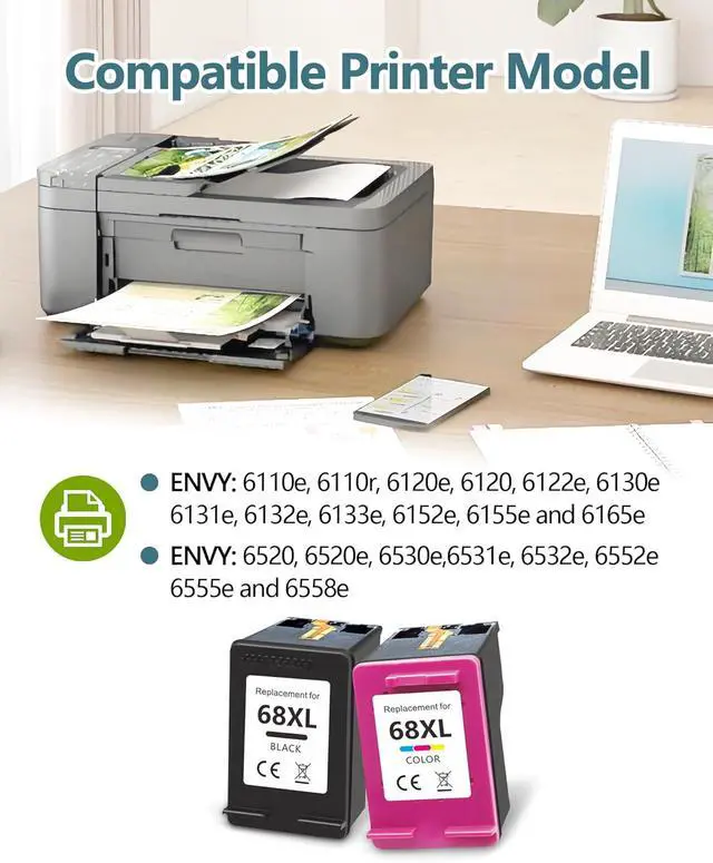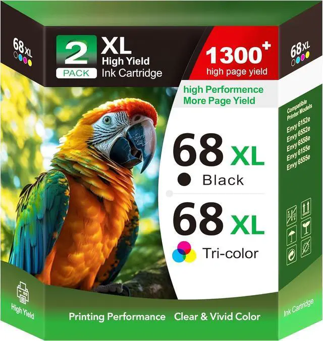 68 ink cartridges work with:Compatible with Envy 6155e, 6555e, 6152e, 6558e, and 6552e printers, ensuring seamless installation and reliable printing performance.