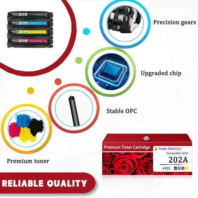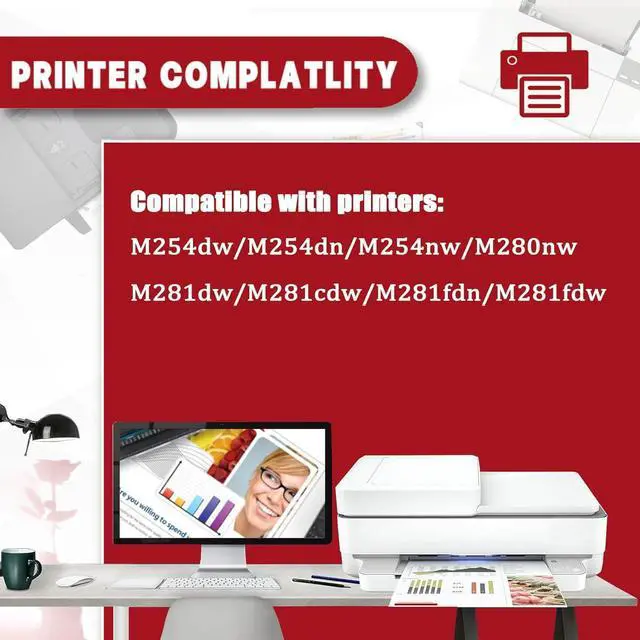 The 202A toner cartridge is compatible for HP Color LaserJet Pro M254dw M254dn M254nw MFP M280nw M281dw M281cdw M281fdn M281fdw Printers.