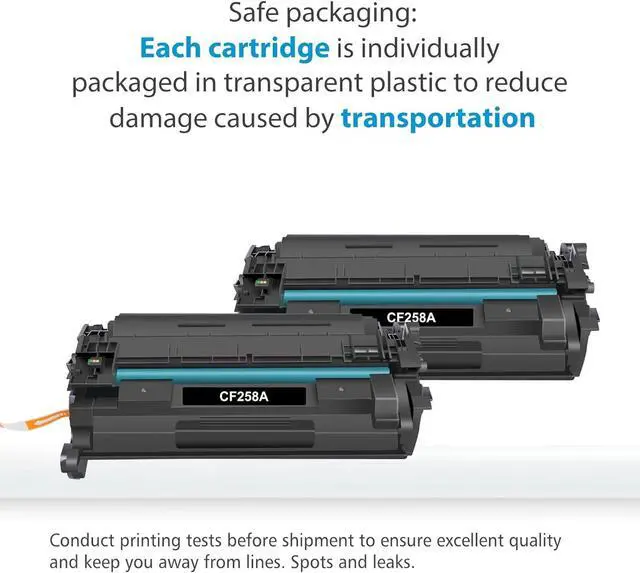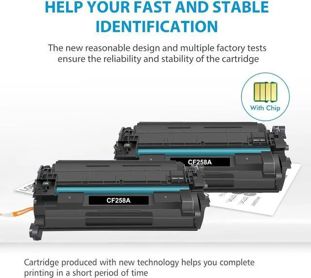 Superior quality: High-efficiency 58A with chips toner to get the clear text and vivid color printing. These 58A toner cartridges are alread installed with orginal chips, No need to transfer orginal 58A toner chip to them